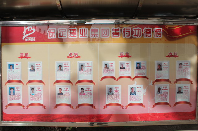 善行功德榜分為“互助、誠信、敬業(yè)、孝敬”四個(gè)方面,共計(jì)展示了道德模范17人,全部由分公司一線員工組成,他們勤勤懇懇、兢兢業(yè)業(yè),在平凡的工作崗位上創(chuàng)造了不平凡的業(yè)績。